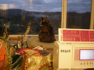 May the quality control expert took a break to look out the window while I was sewing on the green silk.