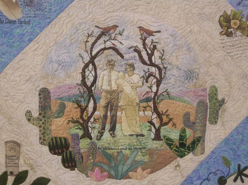 The Texans, by Patricia Styring, was a very popular quilt. The way it conveys its narrative is superb, I think.